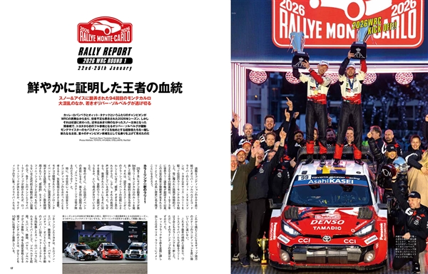 RALLY PLUS Vol.48では、2026年のWRC開幕戦、ラリー・モンテカルロを徹底レポート。現行のラリー1規定最終年を迎えたWRC、シーズン屈指の難コンディションを誇る伝統の開幕戦を制したのは、トヨタのオリバー・ソルベルグでした。