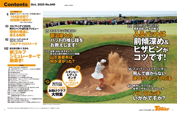 巻頭特集は男子ツアー、女子ツアーで引っ張りだこのパッティング専門コーチ・橋本真和コーチが教える「パットの新常識」! 狙ったところに打っているのに入らない? それ、実は“常識”が間違っているのかも? 橋本コーチが、パッティングに対する“目からウロコ”の考え方を伝授。明日から即実践できるテクニックも満載です!