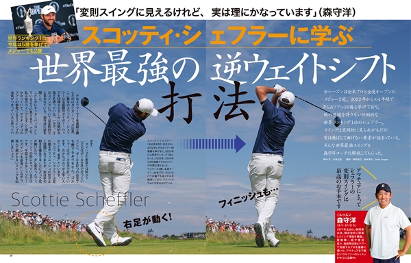 第二特集は スコッティ・シェフラーを真似たら飛んだ! そんなプロゴルファーが続出しているなか、世界No.1のドライバースイングに隠された「飛ばしの秘密」とは? 森守洋プロコーチが本気でシェフラーの動きを真似したい人に向けて、その“真似ポイント”を徹底解説!