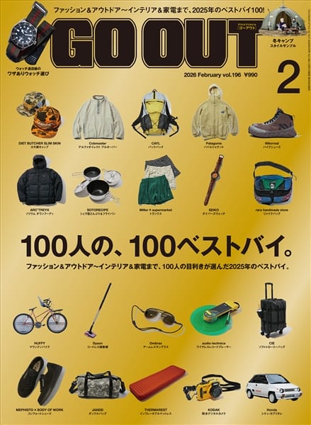 12/27(土)に発売となるGO OUT vol.196 2月号『100人の、100ベストバイ。』では、ファッション&アウトドア~インテリア&家電まで、100人の目利きが選んだ2025年のベストバイをご紹介します!