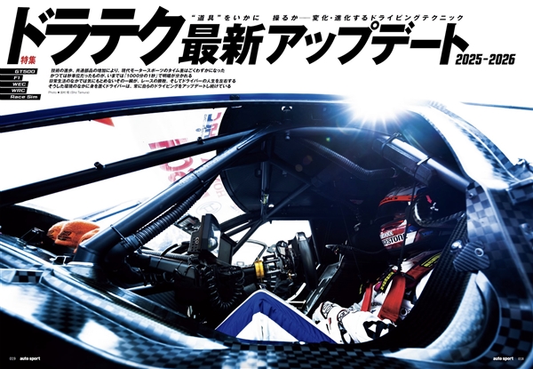 『オートスポーツ』No.1614は好評「「ドラテク」特集、その最新アップデート版(2025-26)です。「“道具”をいかに操るか──変化・進化するドライビングテクニック」と題して、スーパーGT・GT500、F1、WEC、WRCという代表的な各カテゴリーの最新ドライビング事情・トレンド探求に加えて「Race Sim」、いわゆるe-sports方面とリアル世界との関連性はどうなっているのか、ということも含めてその「究極の世界」を探りました。GT500編では今季中盤戦に2戦連続ポールポジションを獲得したARTAシビック16号車を駆る佐藤蓮選手を直撃、長い鈴鹿フルコースの中でほんの数回しかブレーキを踏まず、アクセルコントロールとシフトロックを駆使して車両の向きを変える「ノーブレーキ走法」の実際を伺いました。1'45''377はいかにして実現したのか、注目です。ほかにもNISMOのエース、千代勝正へのインタビューやジャーナリスト・両角岳彦氏による「タイヤ開発とドライビングから24号車快勝のバックグラウンドを推察する記事なども収録しています。またF1では今季移籍加入したレッドブルの角田裕毅やフェラーリのルイス・ハミルトンがなぜ長く同僚と差をつけられているのか、そのギャップはどこでどう生まれているのかを豊富なコーナーごとの車速データを切り口に考察、検証しました。またWEC富士の現場では2004年のル・マン勝者である荒聖治さんと共に各チームのピットを回り、「最新ハイパーカーの操縦・競争空間はどうなっているか」としてGR010やポルシェ913、アストンマーティン・ヴァルキリーなどを一斉に試座、観察しました。新旧マシンを知る現役ドライバーならではの視点は必見です。ほかにもグランツーリスモ世界王者でもあるイゴール・フラガ選手が語る「実践的レースシム活用術」、ハイブリッド非搭載となって新タイヤ銘柄となったWRCにおける「タイヤの使い方の正解」なども掲載しています。
