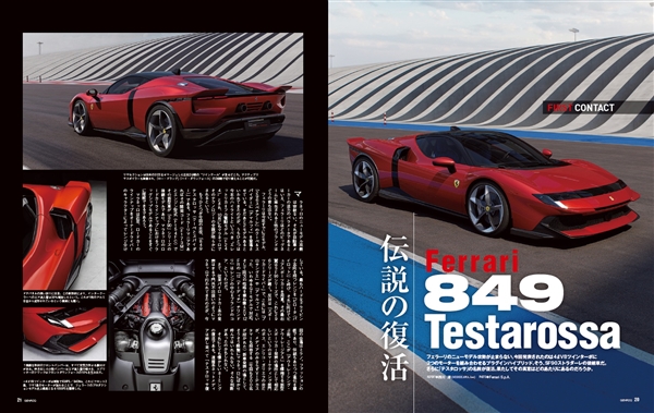 GENROQ 11月号は「 フェラーリ849テスタロッサ 」の詳細レポートからスタート!巻頭特集は「ポルシェの行方」。