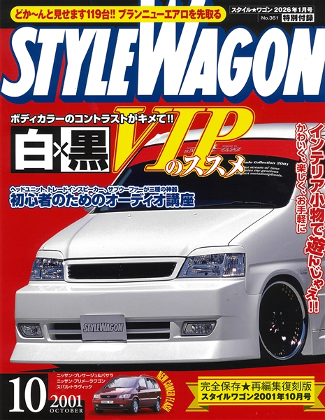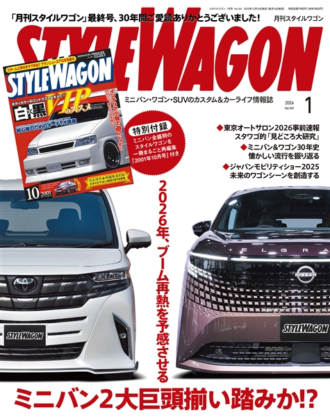 1995年に創刊して、今年2025年に30周年のアニバーサリーをむかえた「月刊スタイルワゴン」ですが、この2026年1月号をもって月刊誌としては休刊することになりました。最後を飾るべく、特別付録として、ワゴン人気が全盛期だった「2001年10月号」を再編集して、まるっと一冊付けてのお届けとなります。基本的にはほぼほぼ企画ページを残した状態でのいまでは入手困難の一冊となっているので、ぜひ手にとって、冬当時の雰囲気を楽しんでもらえたらと思います。