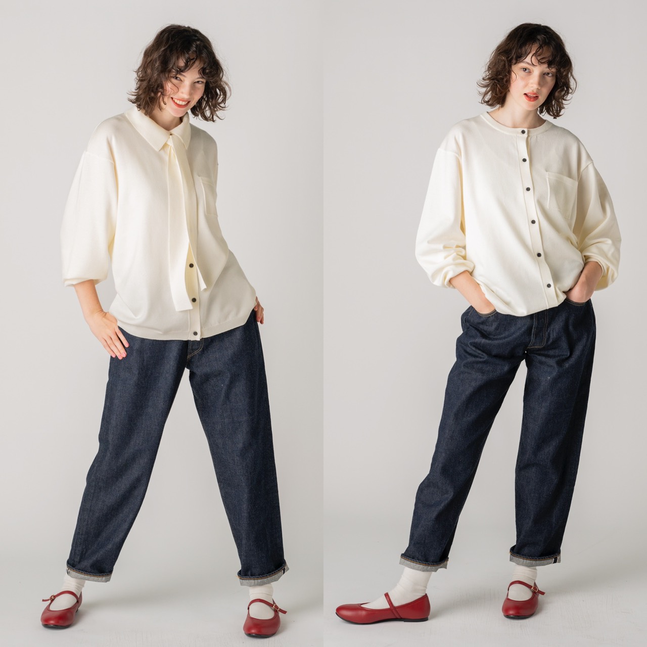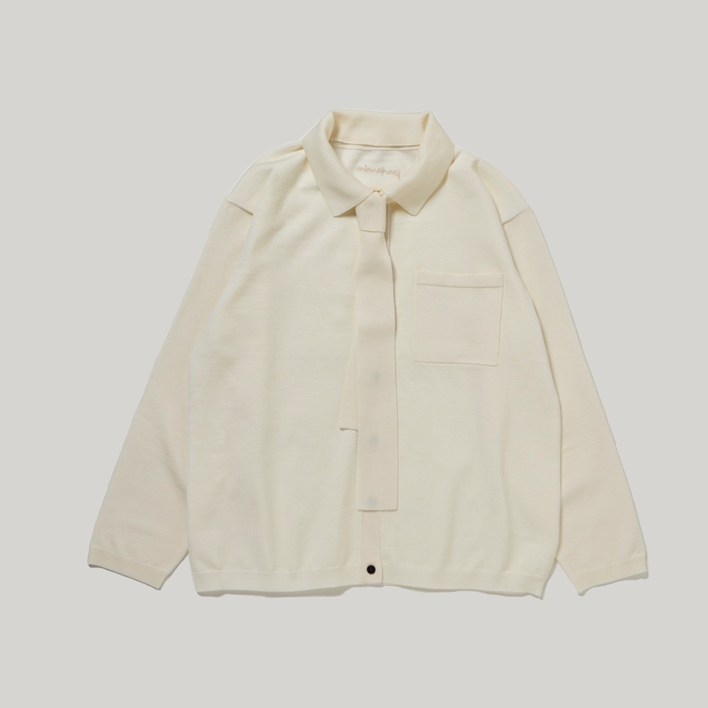 - 大好評、FUDGE FRIEND・UMIディレクションによるオリジナルウエア第3 弾が完成しました。今作は、秋から春先までカバーする万能のセーターです。着回しを得意とするUMIらしい小技の効いたデザインは健在で、アレンジ自在の3way 仕様。襟付きセーターとしてはもちろんのこと、ニットタイをつければシャツセーターのように、襟を外せばニットカーディガンとして使えちゃいます。そして素材は品のあるメリノウールを使いながらも洗濯機で丸洗いも可能。いろんな意味で“使える” 1 着です。