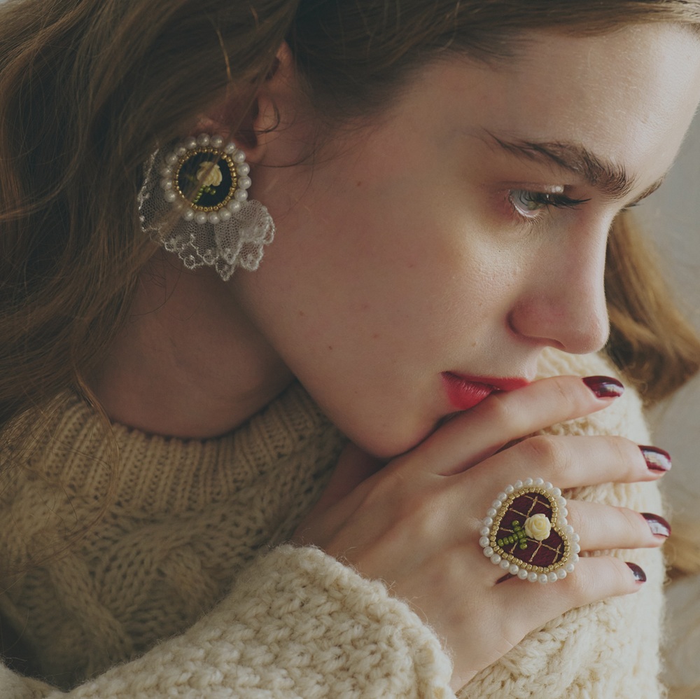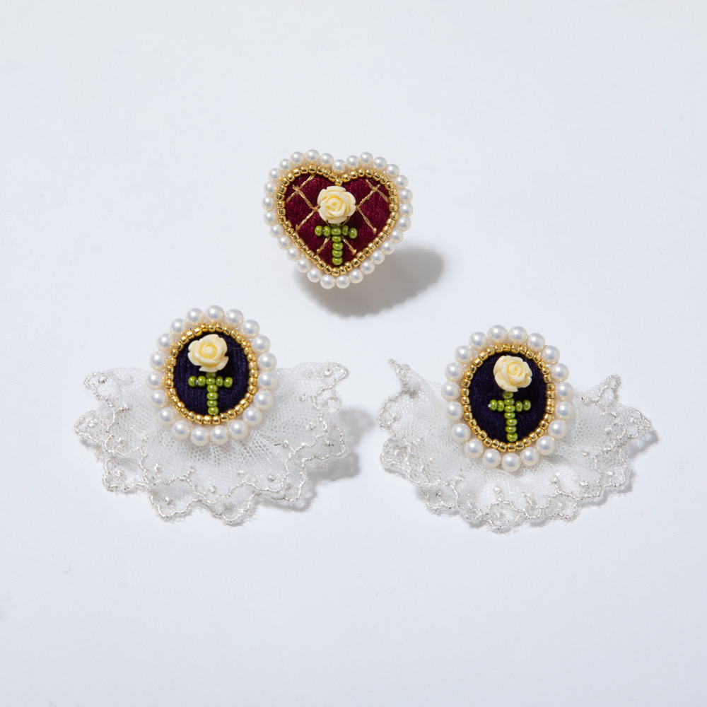刺繍は繊細なつくりの為、水濡れ、引っ掛かり等に注意して丁寧にお取り扱い下さい。 一つ一つ手作業で制作している為、サイズや形に若干の個体差がでますのでご了承下さい。