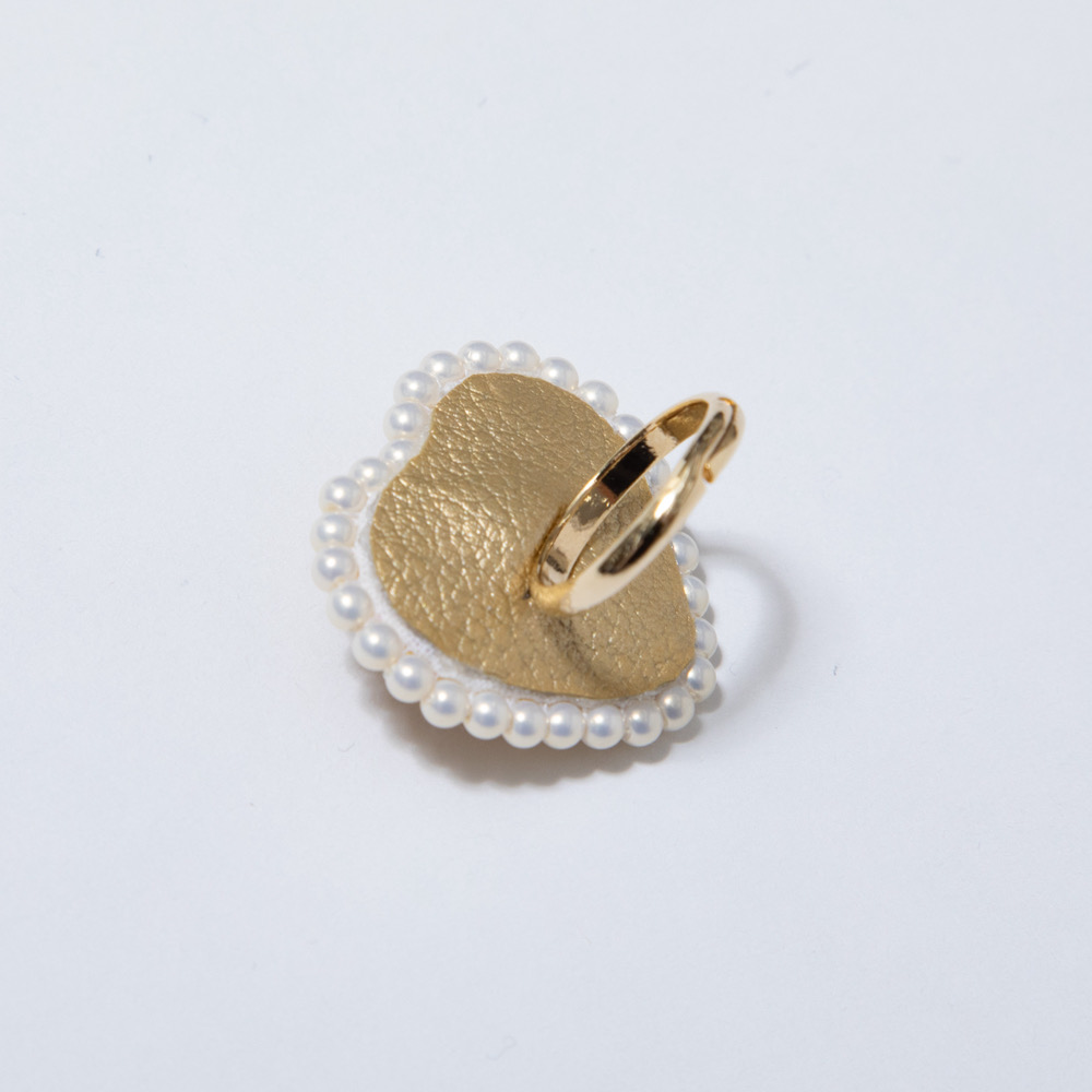 布、刺繍糸、珊瑚(練り)、ビーズ、パールビーズ、フェイクレザー、指輪金具(メッキ)