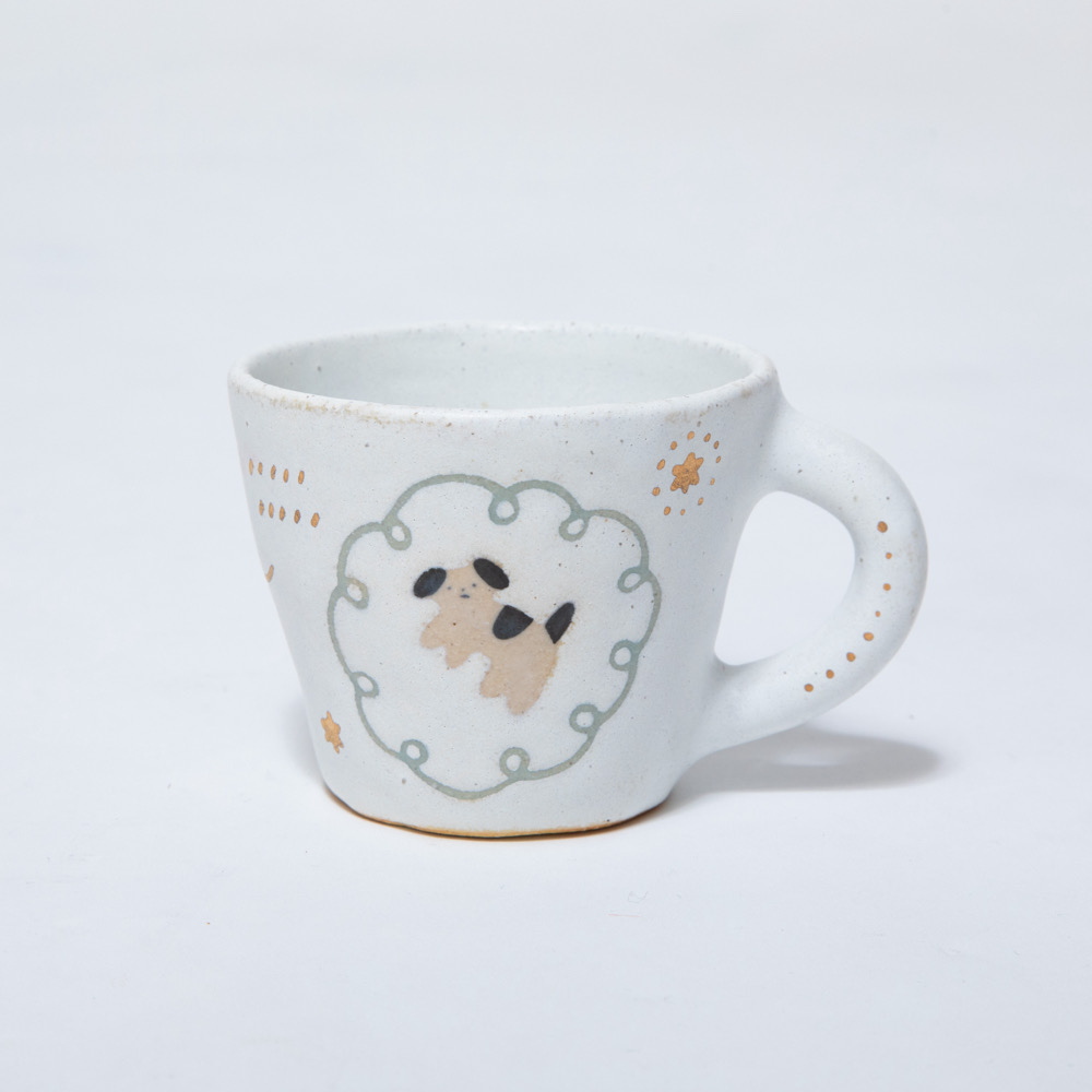 - ユニークでどこかほっこりするようなモチーフが印象的な『綿貫彩(ワタヌキアヤ)』の作品がFUDGEに到着。人気の白いマグカップに犬を描いたシリーズに冬っぽく金彩をあしらいました。