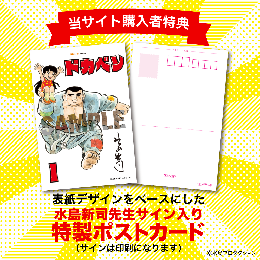 本サイトからの購入限定特典として水島新司先生サイン入り限定ポストカードが付いてきます!(サインは印刷になります)