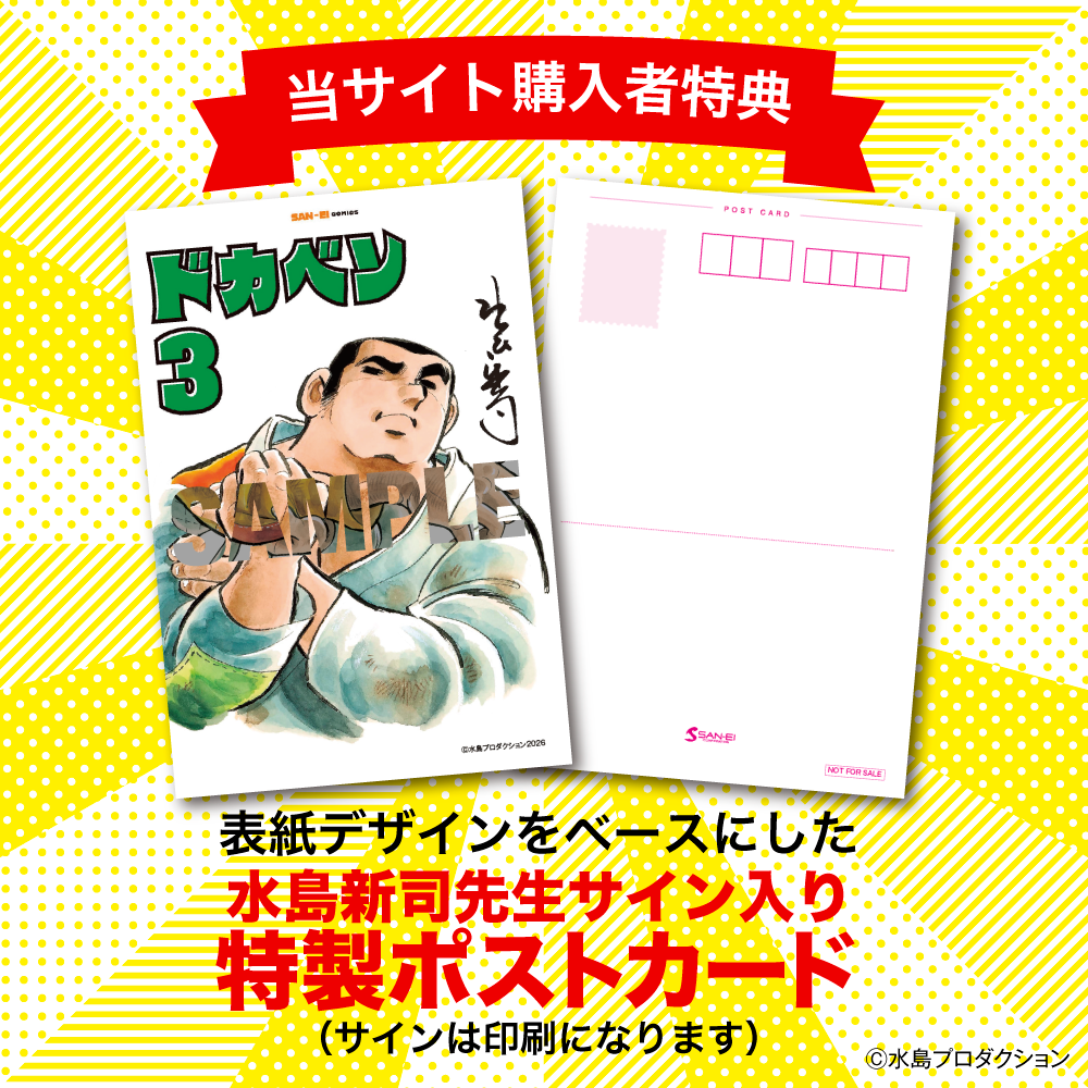 本サイトからの購入限定特典として水島新司先生サイン入り限定ポストカードが付いてきます!(サインは印刷になります)