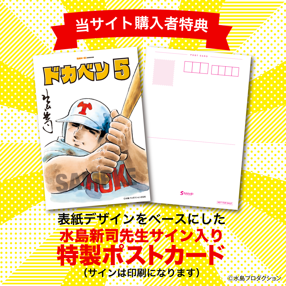 本サイトからの購入限定特典として水島新司先生サイン入り限定ポストカードが付いてきます!(サインは印刷になります)