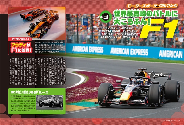 特集はカッコいいレーシングマシン!スーパーGTのマシンやF1など、その機能もくわしく解説しちゃうぞ。60年以上も前にF1に挑戦したホンダのF1マシンの歴史も見逃せないね。